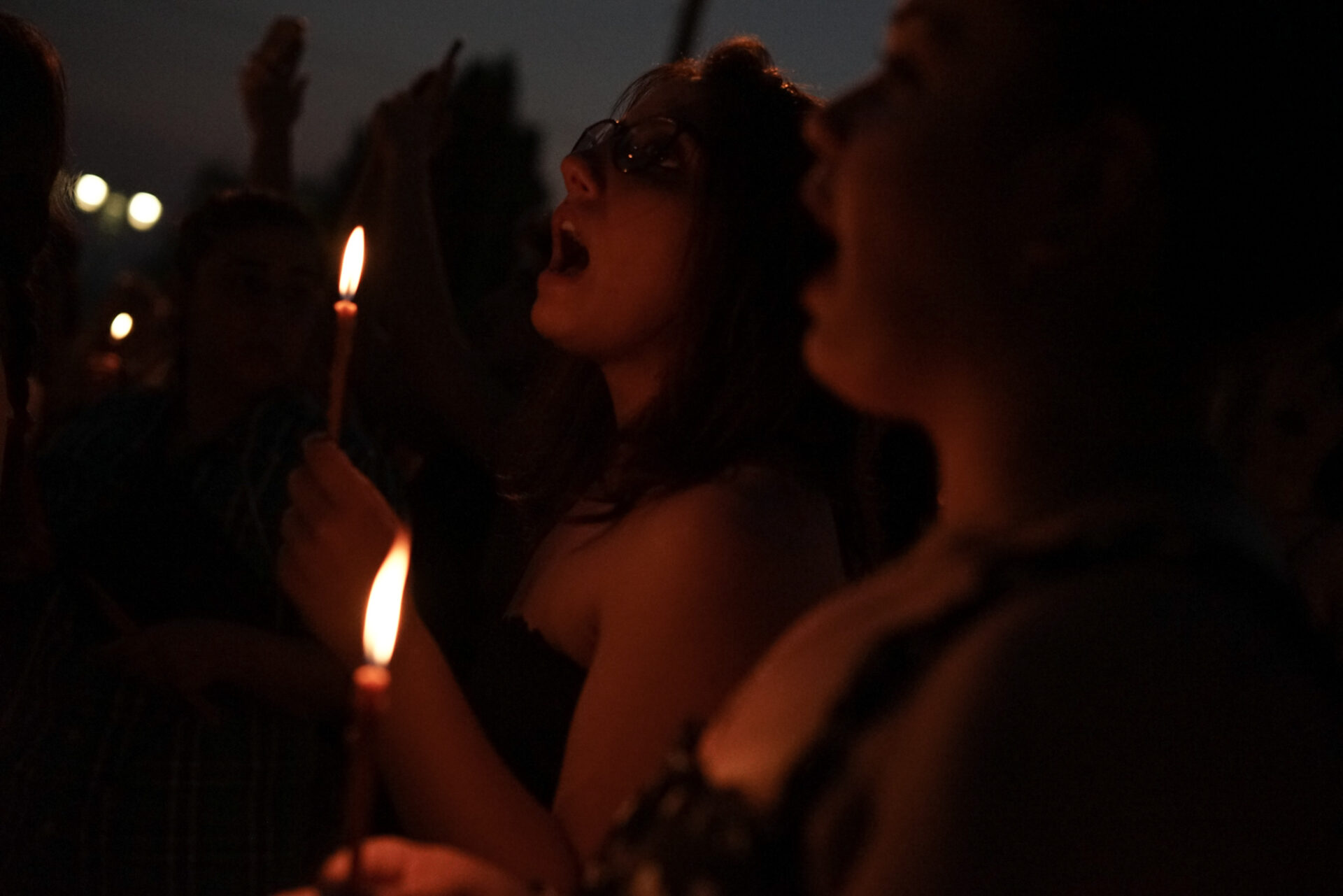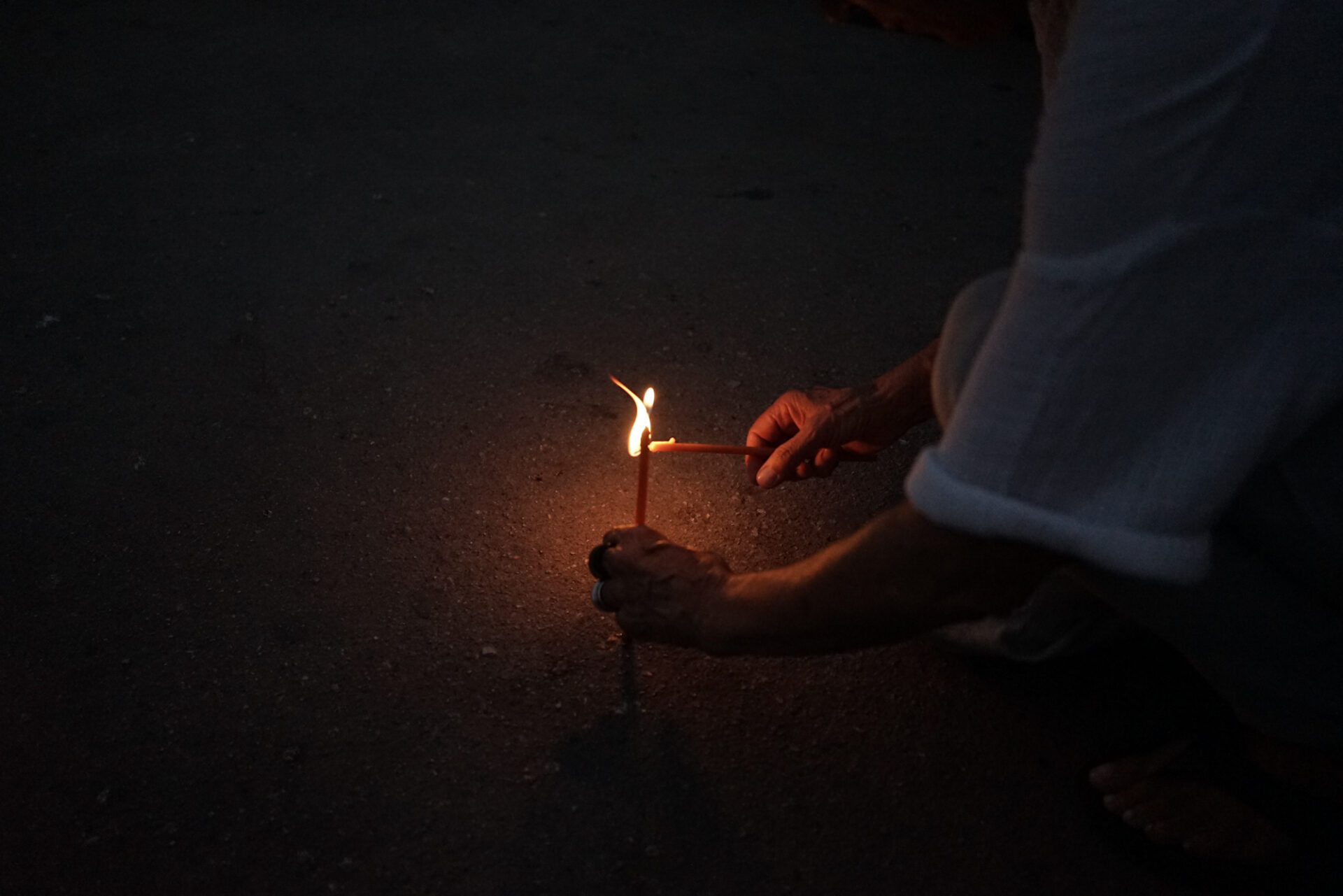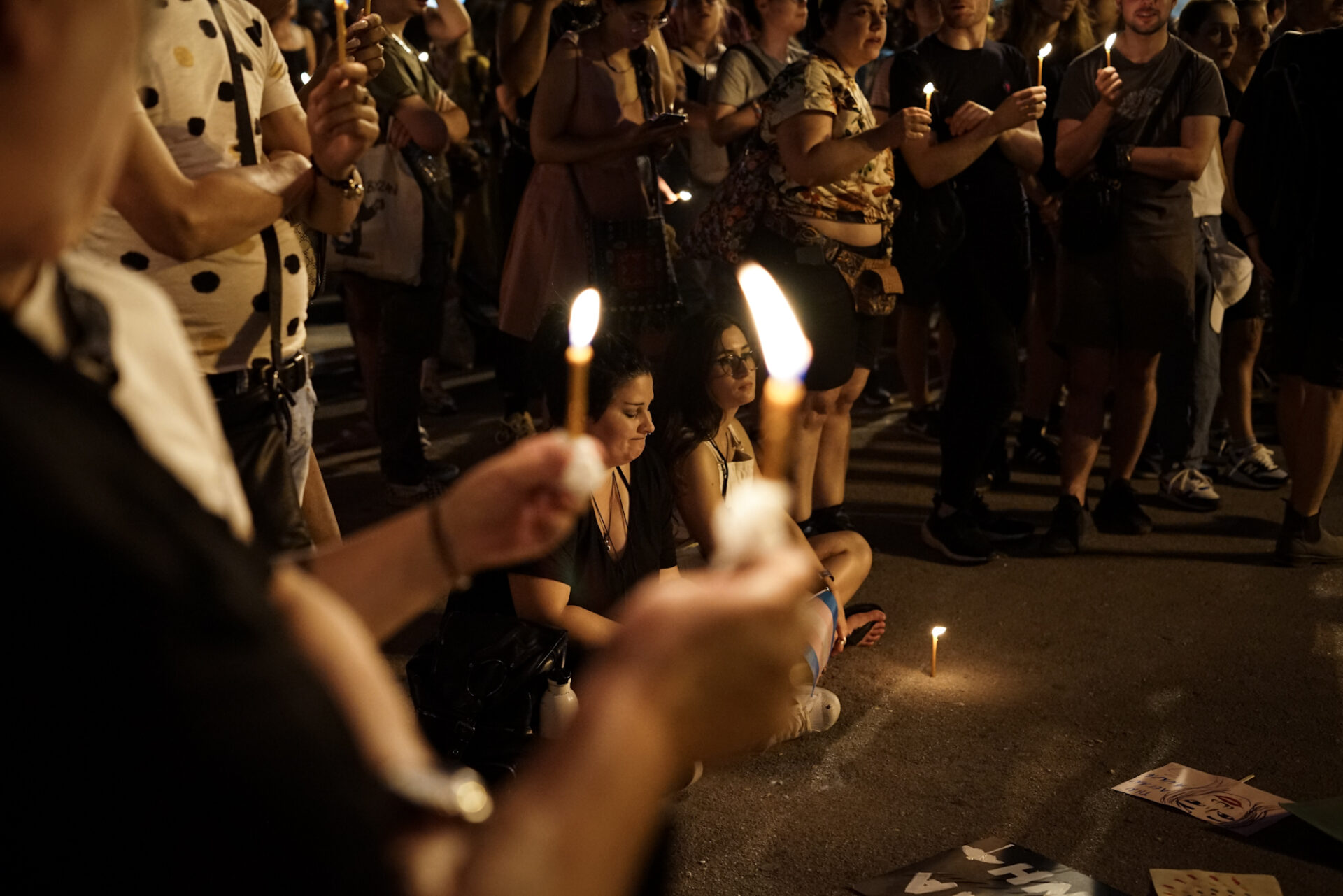 Με συνθήματα και φωνάζοντας το όνομά της τα άτομα που βρίσκονται εκεί, αφήνουν ένα κερί στη μνήμη της Άννας.