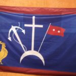 4. Αριστερά του σταυρού επί της ημισελήνου, με γωνία 30 μοιρών, εκτείνεται μια όρθια, ναυτική άγκυρα και γύρω από τον άξονά της τυλίγεται ναυτικό σχοινί, ελεύθερο στην άκρη του, σε λευκό χρώμα και τα δύο, που συμβολίζουν την ελπίδα για ελευθερία, τη σταθερότητα του αγώνα (άγκυρα) και το σπάσιμο των δεσμών από τη σκλαβιά (σχοινί).