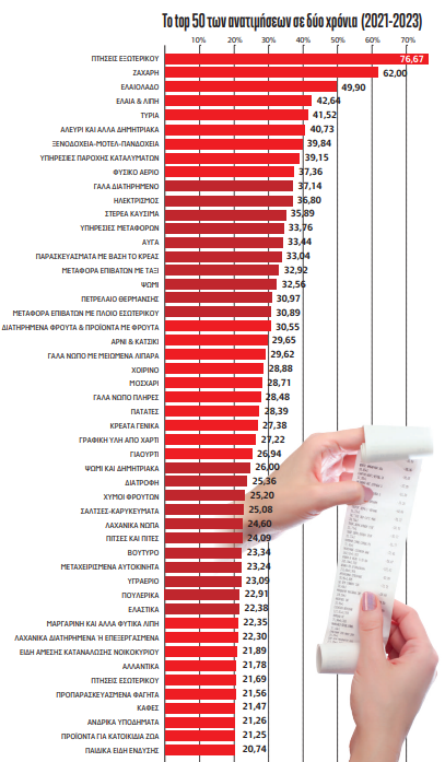 H ακρίβεια «λυγίζει» τα νοικοκυριά- Το top 50 των ανατιμήσεων