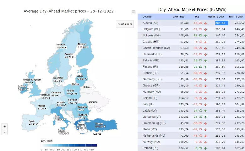 Η Ρυθμιστική Αρχή Ενέργειας παρουσίασε τον ευρωπαϊκό χάρτη τιμών για το ηλεκτρικό ρεύμα σήμερα και εκεί φαινόταν καθαρά ότι η Ελλάδα είχε το πιο ακριβό ρεύμα στην Ευρώπη στις 28.12.2022.