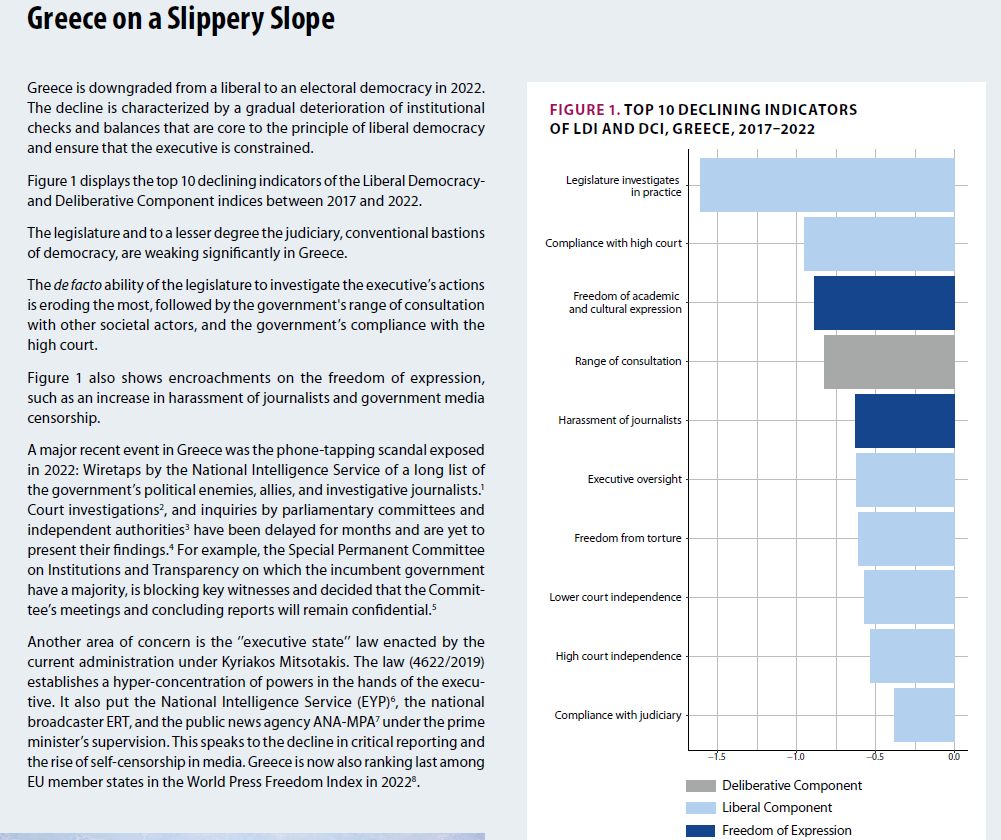 «Η Ελλάδα σε ολισθηρό κατήφορο» – Κόλαφος η V-Dem Έκθεση Δημοκρατίας 2023