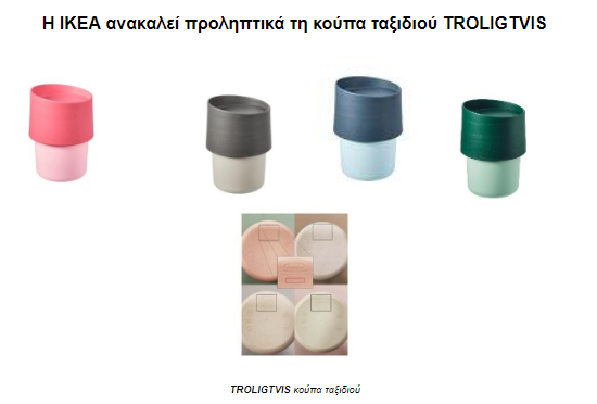 Σε προληπτική ανάκληση της κούπας ταξιδιού «TROLIGTVIS» προχωράει η ΙΚΕΑ λόγω μη τήρησης των κανονισμών της εταιρείας αναφορικά με τη χρήση χημικών για την παρασκευή δοχείων μεταφοράς τροφίμων.