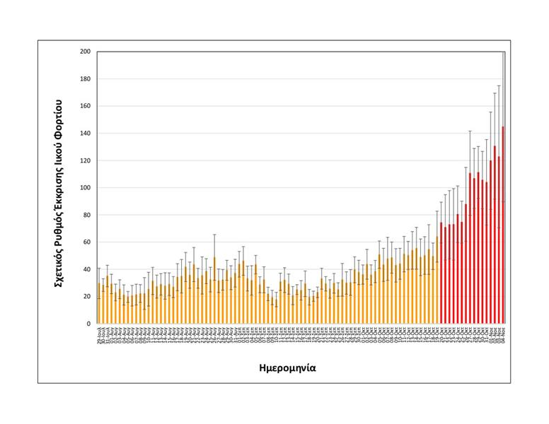 -Οριακά σταθερή (+7%) σε σχέση με τη μέση τιμή των δύο αμέσως προηγούμενων μετρήσεων της Δευτέρας 1/11 και της Τρίτης 2/11.