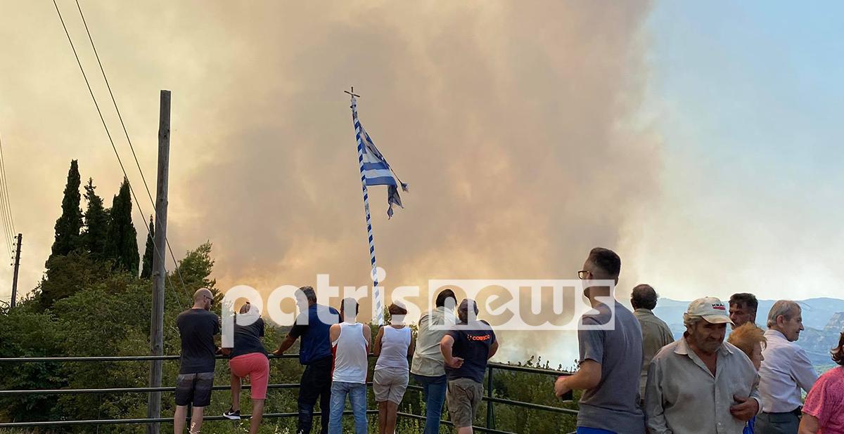 H φωτιά μαίνεται ανεξέλεγκτη και έχει φτάσει να απειλεί χωριά της Αρχαίας Ολυμπίας.