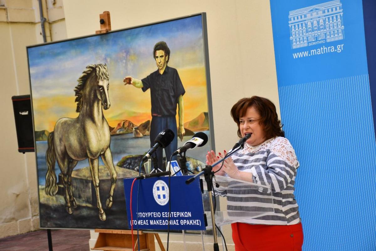 Αναφέρθηκε, ακόμη, στο μήνυμα δημιουργικότητας και συλλογικής δράσης για το κοινό καλό που στέλνει η σύνθεση δυνάμεων των δυο δημιουργών που έδωσαν το “είναι” τους για την Ελλάδα. “Τους οφείλουμε ένα μεγάλο ευχαριστώ διότι ως προσωπικότητες παγκόσμιας εμβέλειας σφράγισαν την ιστορία της πατρίδας μας τον 20ο αιώνα. Ο ένας με τη μουσική και ο άλλος με τη ζωγραφική έδωσαν φωνή στην ελπίδα γιατί πρώτα βίωσαν και μετά δημιούργησαν. Μας δίδαξαν ότι η τέχνη, όσο ριζοσπαστική και αν είναι πολλές φορές, αποτελεί βάλσαμο που γιατρεύει τις αγωνίες και δίνει ιδέες να βελτιώσουμε τον τρόπο σκέψης. Μας επηρέασαν θετικά αξιοποιώντας τη μουσική και τα χρώματα για να δημιουργήσουν ερεθίσματα. Ελάφρυναν τον πόνο και τις αγωνίες μας, διεισδύοντας με το έργο τους στο βάθος της ψυχής μας”.