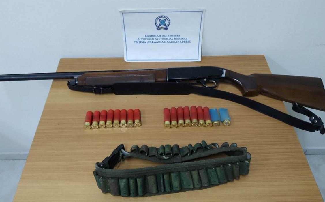 Στην κατοχή του βρέθηκαν και κατασχέθηκαν μία κυνηγετική καραμπίνα με αποξεμένο τον αριθμό σειράς και 8 κυνηγετικά φυσίγγια. Στην αυλή του σπιτιού του εντοπίστηκαν 9 χρησιμοποιημένα κυνηγετικά φυσίγγια, τα οποία και κατασχέθηκαν.