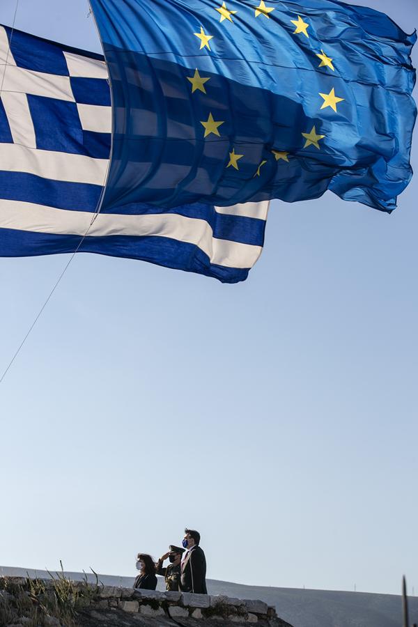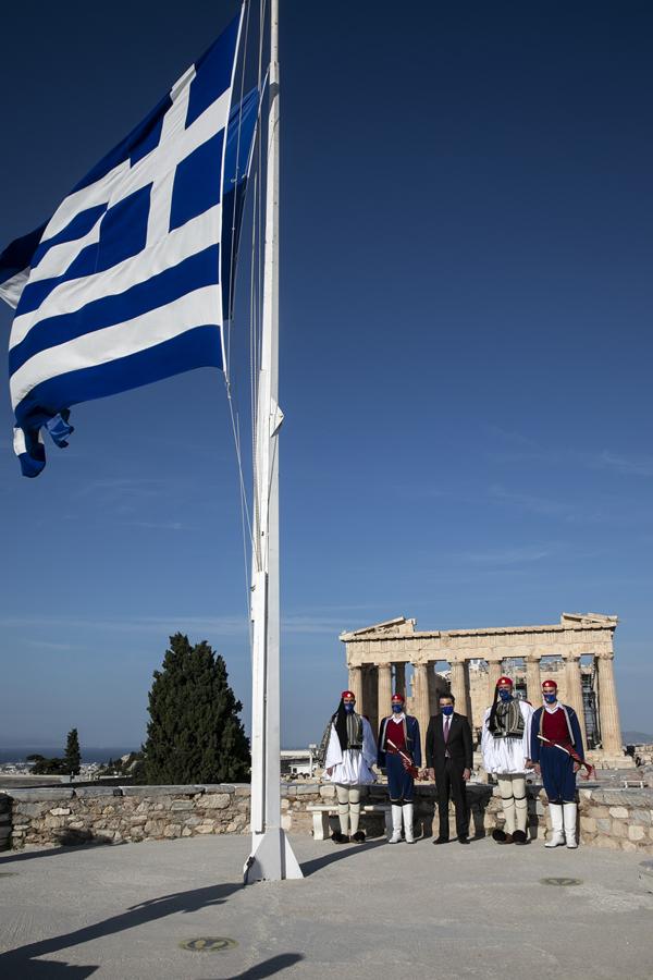 Εξαιτίας της πανδημίας, ο εορτασμός περιορίστηκε στην έπαρση της ελληνικής σημαίας και της σημαίας της Ευρωπαϊκής Ένωσης στον Ιερό Βράχο της Ακρόπολης.