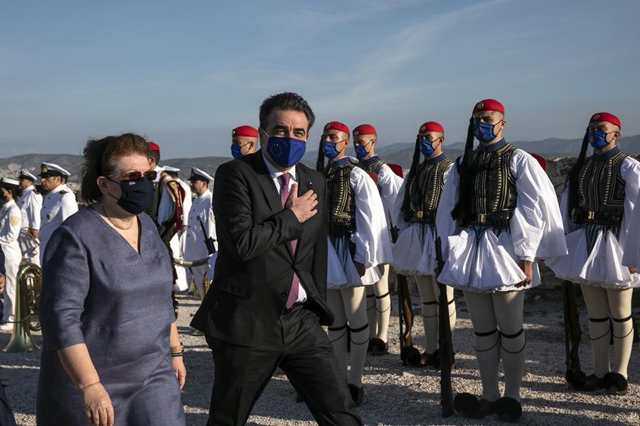 Αφού κατέθεσε στεφάνι στο μνημείο του Αγνώστου Στρατιώτη, η κυρία Σακελλαρόπουλου τόνισε ότι για την πατρίδα μας, η Ευρωπαϊκή Ένωση είναι χώρος ευημερίας και ασφάλειας, και σημείωσε ότι στις προκλήσεις της εποχής μας, την πανδημία, την οικονομία και την κλιματική αλλαγή, η Ευρώπη οφείλει να απαντήσει με ενότητα και αλληλεγγύη.