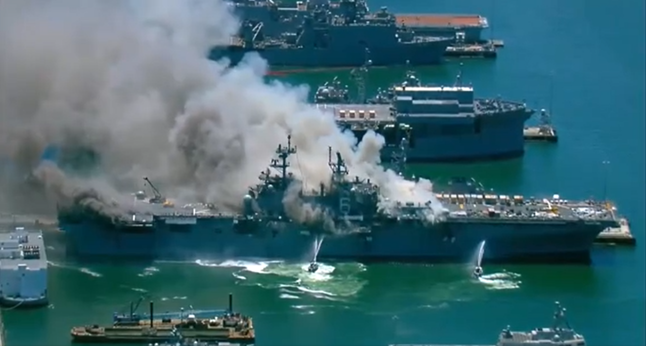 Στο βίντεο που είδε το φως της δημοσιότητας από το σημείο διακρίνονται πυροσβέστες να επιχειρούν κι ενώ πυκνός καπνός υψώνεται από το αμφίβιο πολεμικό πλοίο που είναι αγκυροβολημένο στη ναυτική βάση του Σαν Ντιέγκο.