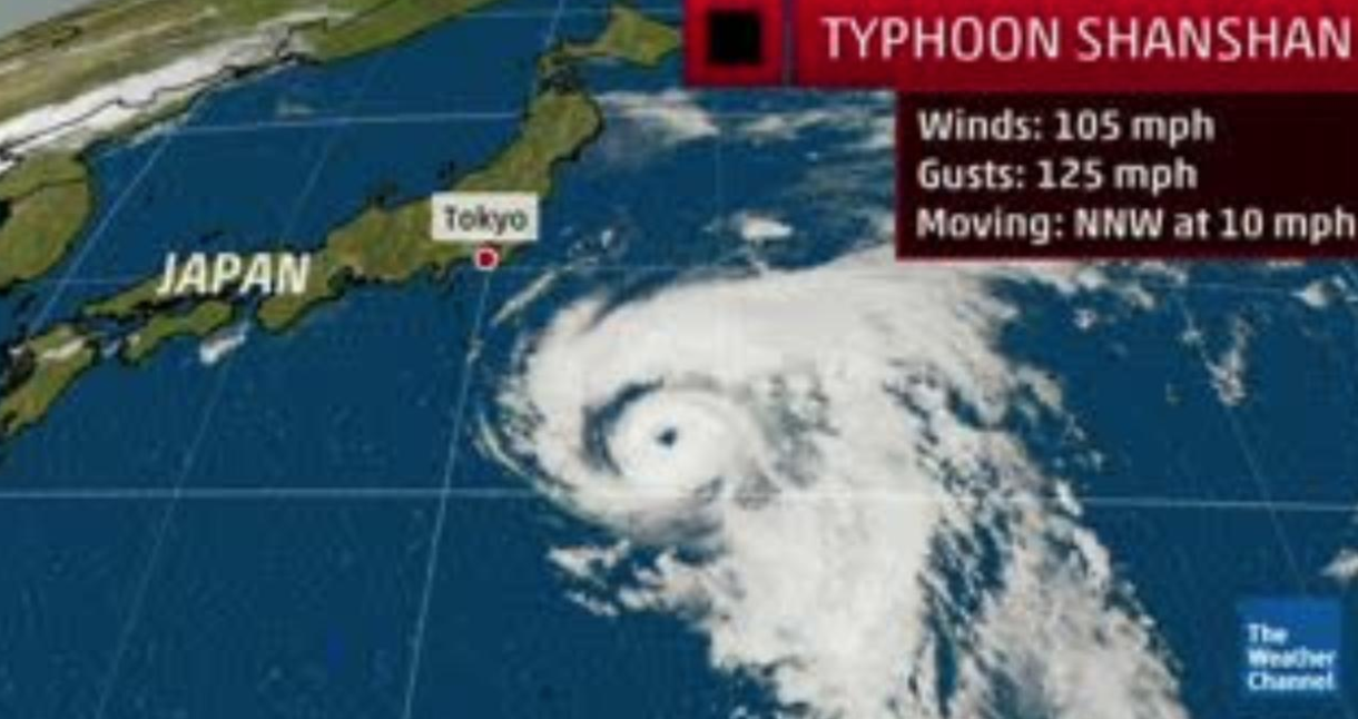 Ο Shanshan, ο 13ος τυφώνας της εποχής αυτής στην Ασία, θα βρίσκεται τα μεσάνυχτα σε απόσταση περίπου 150 χλμ. από το Τόκιο, με ριπές ανέμου που θα φθάνουν τα 180 χλμ. την ώρα. Ο Σανσάν θα περάσει αγγίζοντας την ανατολική ακτή, όχι μακριά από την πρωτεύουσα, πριν κατευθυνθεί ακόμη πιο βορειοανατολικά τις πρώτες ώρες της Πέμπτης, σύμφωνα με την εθνική μετεωρολογική υπηρεσία.