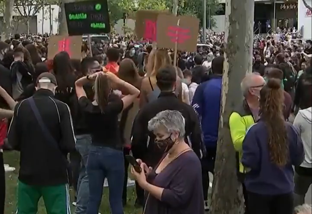“Δεν είναι καραντίνα, είναι διάκριση”, φώναζαν οι διαδηλωτές μπροστά από το κοινοβούλιο της περιφέρειας της Μαδρίτης.