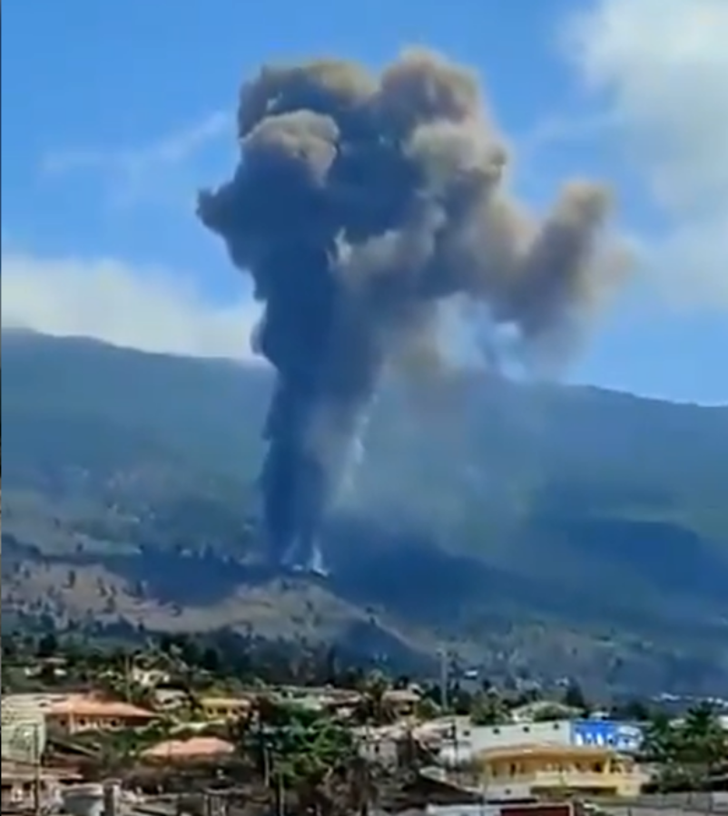 Μια τεράστια στήλη καπνού υψώθηκε μετά την έκρηξη στις 15.15 τοπική ώρα στο εθνικό πάρκο Cumbre Vieja στο νότιο τμήμα της νήσου, σύμφωνα με την κυβέρνηση των Καναρίων Νήσων.