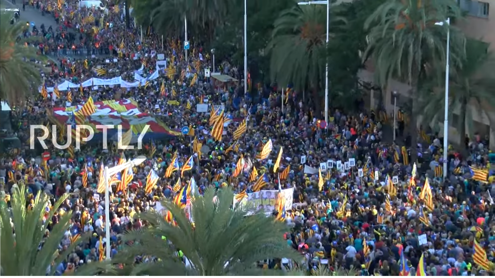 Κρατώντας σημαίες των αυτονομιστών και φωνάζοντας το σύνθημα «Ελευθερία στους πολιτικούς κρατουμένους»