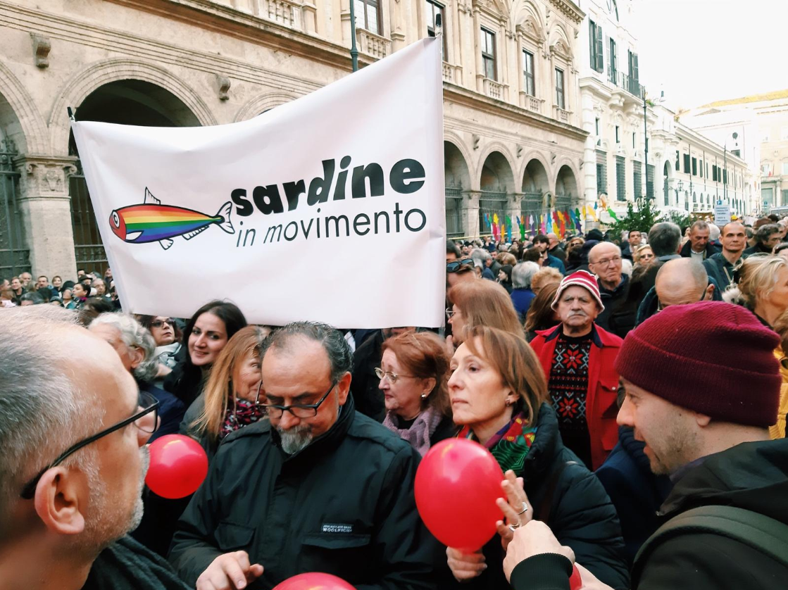 Τα μέλη του «κινήματος της σαρδέλας» οργάνωσαν σήμερα το απόγευμα σε νέα κινητοποίηση, στο κέντρο της ιταλικής πρωτεύουσας.