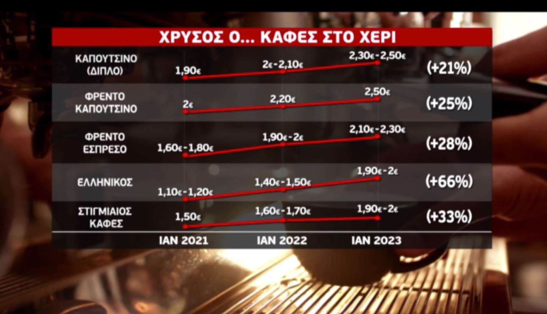 Από 2 ευρώ ο φρέντο καπουτσίνο το 2021, στα 2,5 ευρώ στις πρώτες ημέρες του 2023