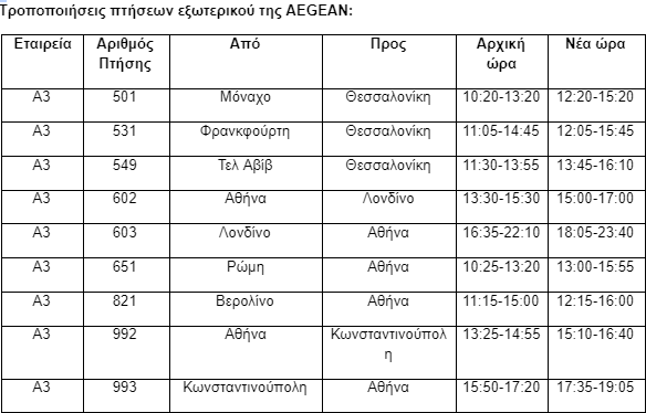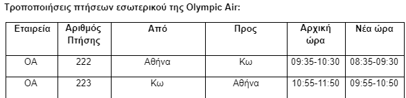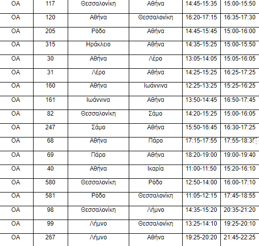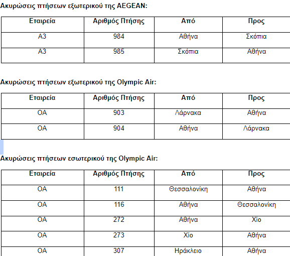 *Για περισσότερες πληροφορίες, παρακαλούνται οι επιβάτες όπως επισκέπτονται το site της AEGEAN www.aegeanair.com και της Olympic Air www.olympicair.com ή επικοινωνήσουν στα κάτωθι τηλέφωνα: Για την AEGEAN: 801 1120000 (από σταθερό), 210 6261000 (από κινητό) Για την Olympic Air: 801 801 0101 (από σταθερό), 210 3550500 (από κινητό)