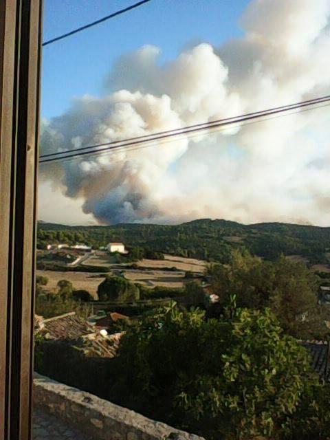 Οι πυροσβεστικές δυνάμεις έχουν υποχωρήσει μέσα στο χωριό και βρίσκονται στις αυλές των πρώτων σπιτιών για να τα προστατέψουν. Η φωτιά μπαίνει στις αυλές των σπιτιών, ενώ οι κάτοικοι έχουν συγκεντρωθεί στην πλατεία με εντολή της αστυνομίας και ετοιμάζονται να εγκαταλείψουν το χωριό για να μην κινδυνεύσουν. H εκκένωση θα γίνει μόλις αποφασιστεί με μίνι μπας του Δήμου και του Εθνικού Θαλάσσιου Πάρκου Οι καμπάνες του χωριού χτυπούν διαρκώς ειδοποιώντας για τις φλόγες που έφτασαν στα σπίτια.