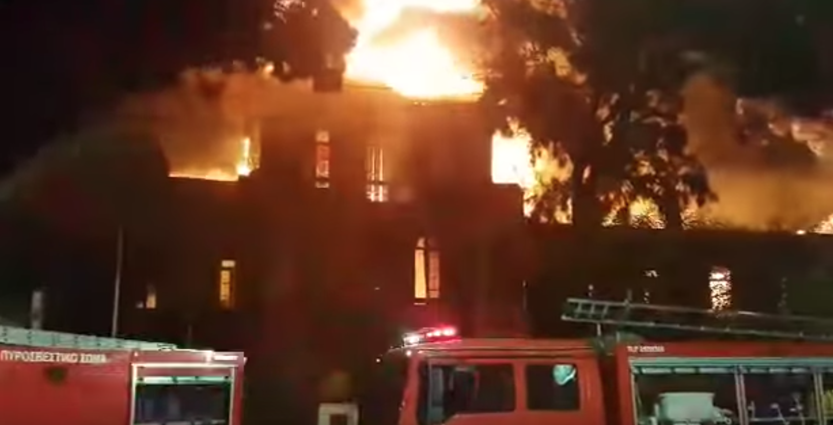 Η καταστροφή είναι ολοσχερής καθώς το εσωτερικό του κτιρίου είχε πολλές ξύλινες κατασκευές.