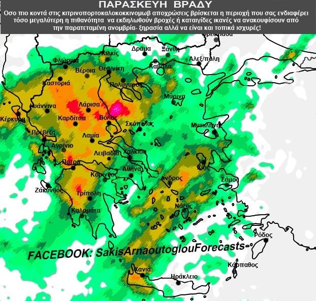 Όπως θα δείτε πολύ νερό θα δεχτεί ο Βόλος, η Καρδίτσα, η Πάτρα, η Τρίπολη και οι γύρω περιοχές το βράδυ της Παρασκευής.