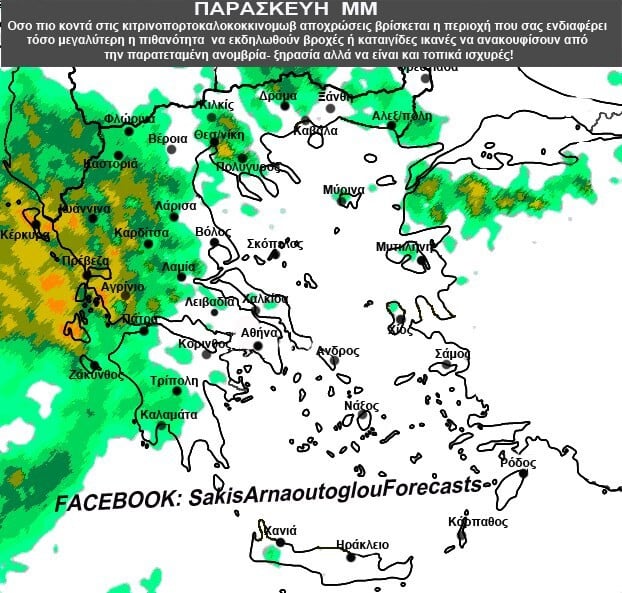 Ενόψει της μίνι κακοκαιρίας που θα έρθει στην Ελλάδα την Παρασκευή, ο Σάκης Αρναούτογλου προειδοποιεί, δημοσιεύοντας τρεις χάρτες, για τις περιοχές που θα έχουν έντονα φαινόμενα.