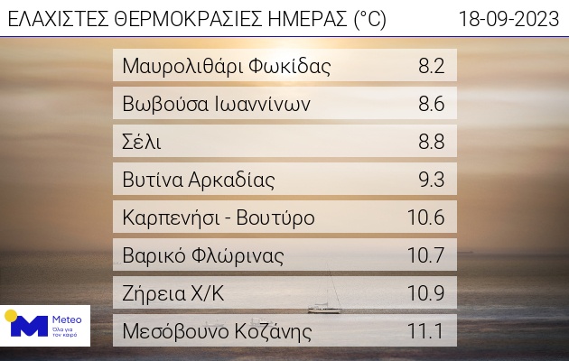 Οι 8 περιοχές με τις ελάχιστες θερμοκρασίες.