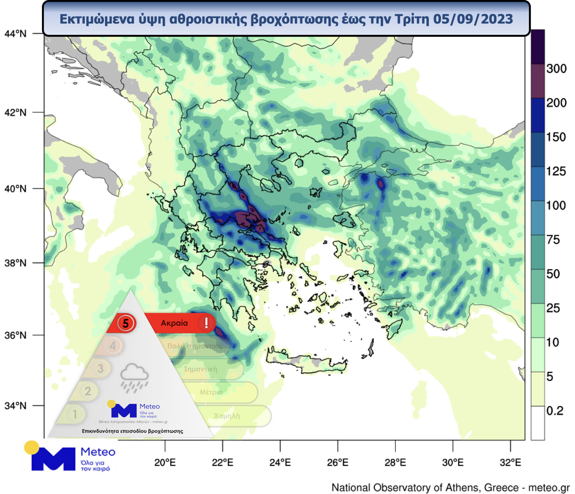 Στο παρακάτω γράφημα παρουσιάζεται ο αναμενόμενος αθροιστικός υετός έως την Τρίτη 05.09.2023.