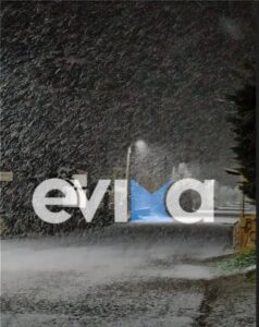 Όσον αφορά την Εύβοια, η πυκνή χιονόπτωση στα Κριεζά του Δήμου Κύμης Αλιβερίου ξεκίνησε από νωρίς χθες το βράδυ ενώ το χιόνι σκέπασε τα πάντα ακόμη και τον επαρχιακό δρόμο Λεπούρων – Καρύστου.