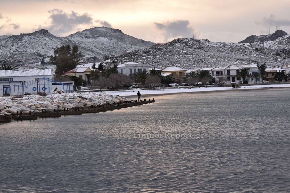 Λήμνος: Πυκνό χιόνι έχει καλύψει μέχρι και τις παραλίες