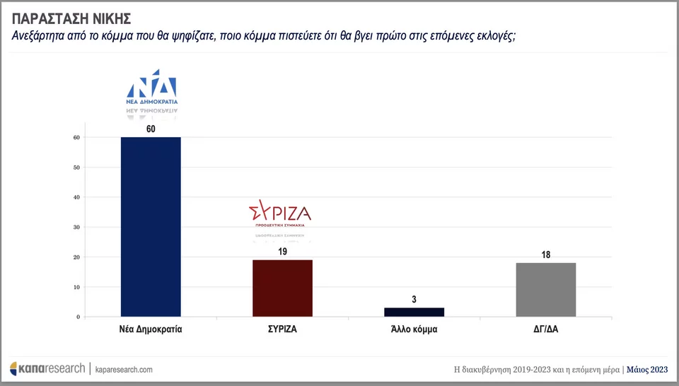 Στην παράσταση νίκης η ΝΔ συγκεντρώνει ποσοστό 60%, έναντι 19% του ΣΥΡΙΖΑ