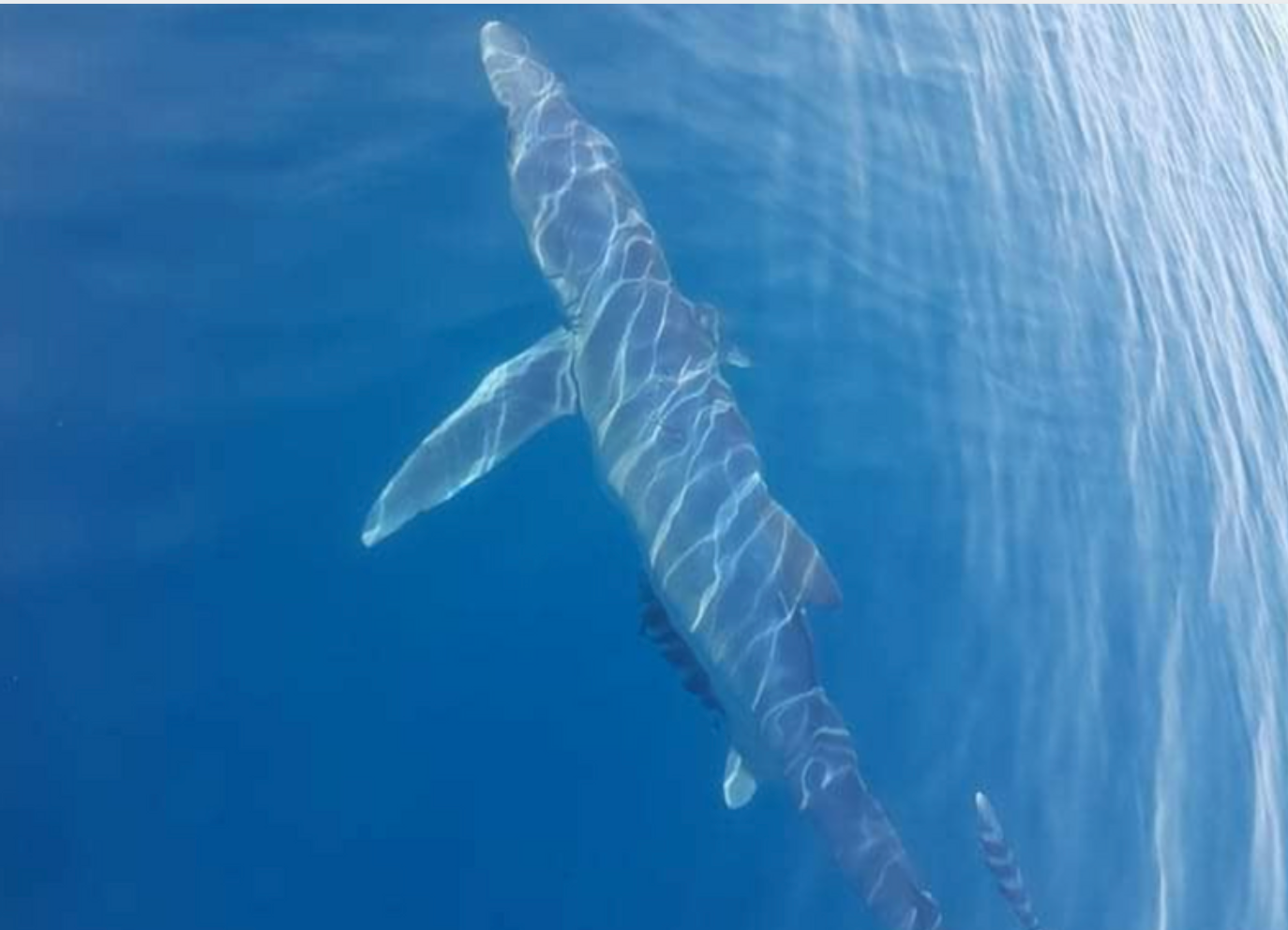Ο καρχαρίας, δεν φαινόταν μάλιστα να ενοχλείται από την παρουσία του σκάφους. Σύμφωνα, επίσης, με αναρτήσεις στη σελίδα «Fishing in Greece» στο Facebook, πρόκειται και εδώ για γαλάζιο καρχαρία (Prionace glauca).