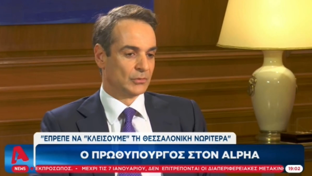 Συγκεκριμένα όταν ο πρωθυπουργός ρωτήθηκε από τον Αντώνη Σρόιτερ για το αν άργησε η κυβέρνηση να πάρει μέτρα απάντησε πως “…έχω πει πως εκ των υστέρων μπορεί να έκλεινα τη Βόρεια Ελλάδα, τη Θεσσαλονίκη μια εβδομάδα νωρίτερα αλλά ξέρετε τότε δεν υπήρχαν αιτήματα να κλείσουμε νωρίτερα, από κανέναν, ούτε κανείς ειδικός μας το είχε υποδείξει αυτό…”