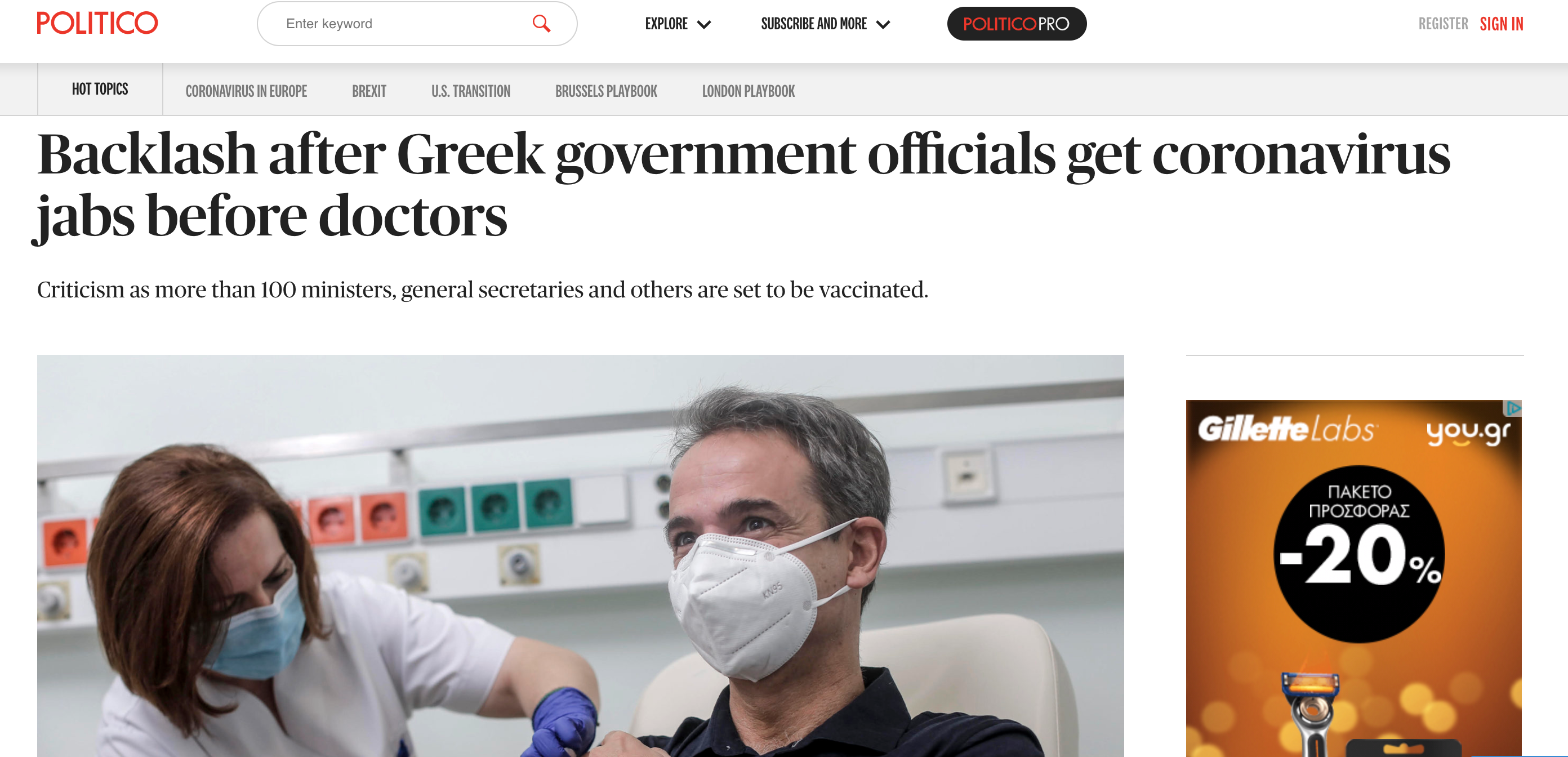 Ο ΓΓ των νοσοκομειακών γιατρών δήλωσε ότι αναβλήθηκε ο εμβολιασμός υγειονομικών και στη θέση τους εμβολιάστηκαν κυβερνητικοί αξιωματούχοι.
