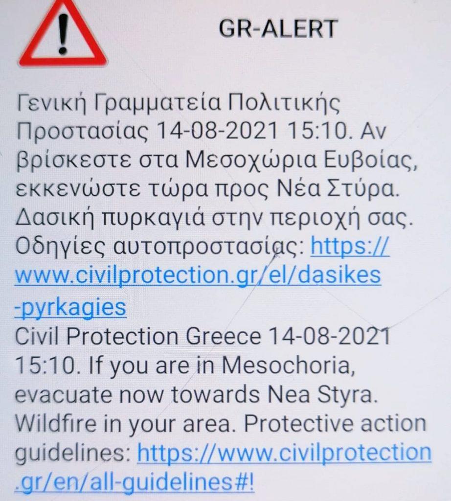 Λίγο μετά τις 15:00 οι πολίτες έλαβαν πράγματι μήνυμα του 112 για προληπτική εκκένωση του χωριού.