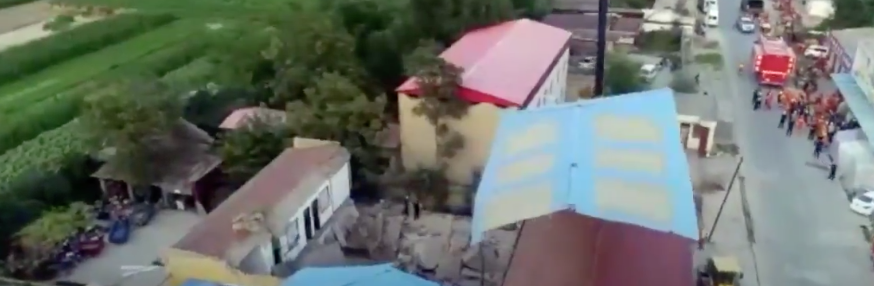 Drone footage of collapsed restaurant in N. #China, at least 17 dead. https://t.co/BDkQMLfG5s pic.twitter.com/QFLw1BQAju