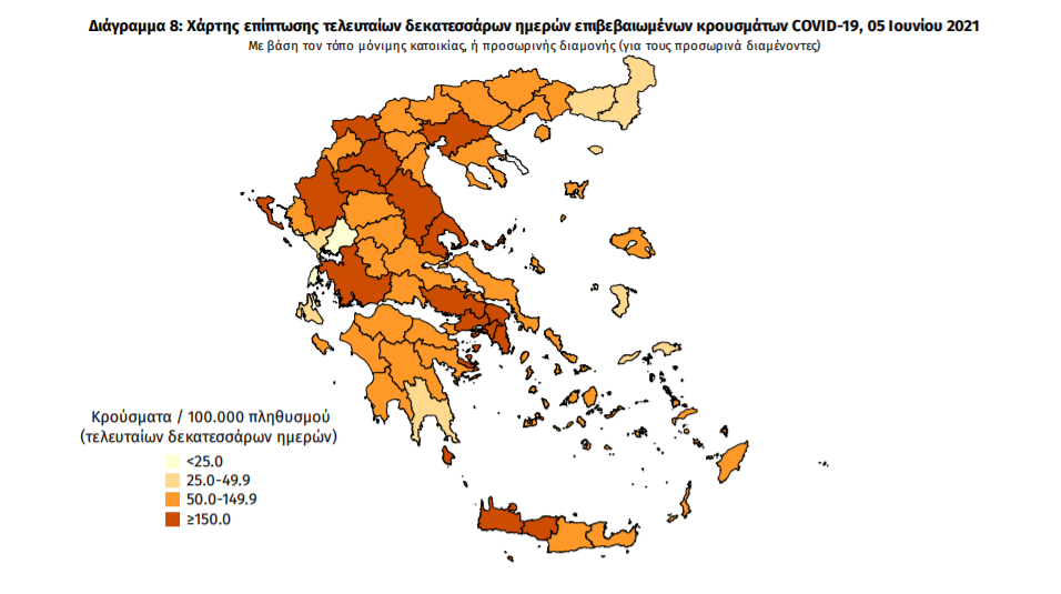 Τα νέα εργαστηριακά επιβεβαιωμένα κρούσματα της νόσου που καταγράφηκαν τις τελευταίες 24 ώρες είναι 932, εκ των οποίων 1 εντοπίστηκε κατόπιν ελέγχων στις πύλες εισόδου της χώρας. Ο συνολικός αριθμός των κρουσμάτων ανέρχεται σε 408.789 (ημερήσια μεταβολή +0.2%), εκ των οποίων 51.2% άνδρες. Με βάση τα επιβεβαιωμένα κρούσματα των τελευταίων 7 ημερών, 34 θεωρούνται σχετιζόμενα με ταξίδι από το εξωτερικό και 1.913 είναι σχετιζόμενα με ήδη γνωστό κρούσμα.