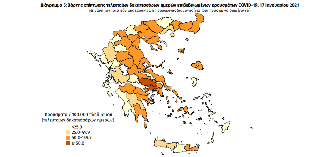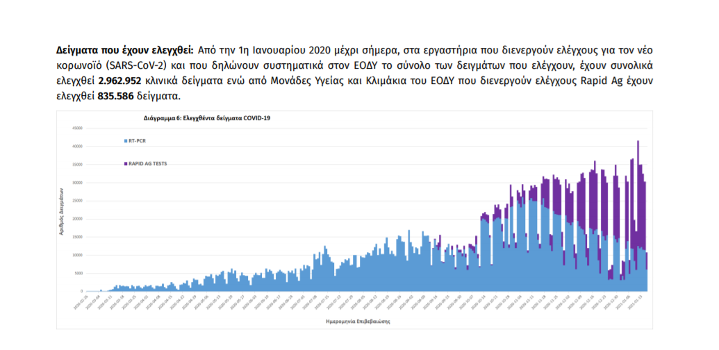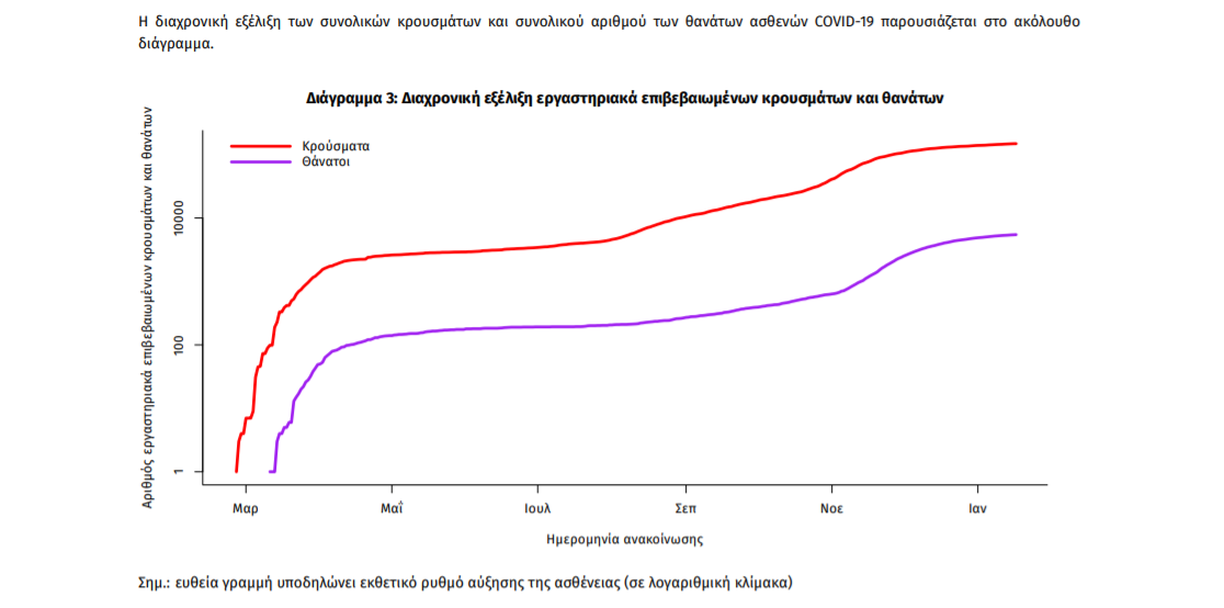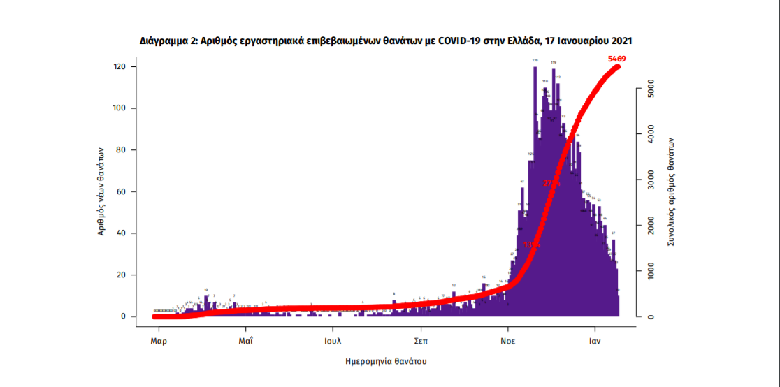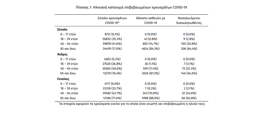 Τέλος, έχουμε 28 νέους θανάτους από τη νόσο COVID-19, φθάνοντας τους 5469 θανάτους συνολικά στη χώρα, εκ των οποίων 3225 (59.0%) άνδρες. Η διάμεση ηλικία των θανόντων συμπολιτών μας ήταν τα 79 έτη και το 95.4% είχε κάποιο υποκείμενο νόσημα ή/και ηλικία 70 ετών και άνω.