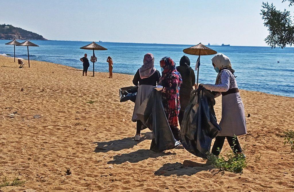 Ο Δήμος Καβάλας χορήγησε σακούλες, γάντια, μάσκες και οι πρόσφυγες συγκέντρωσαν όλα τα σκουπίδια που υπήρχαν κατά μήκος της παραλίας.