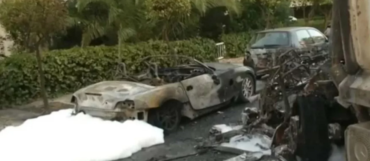 Τα δύο οχήματα καταστράφηκαν ολοσχερώς, όπως και ένα ακόμη σταθμευμένο όχημα που ήταν στο σημείο. Ένα τέταρτο αυτοκίνητο υπέστη υλικές ζημιές.