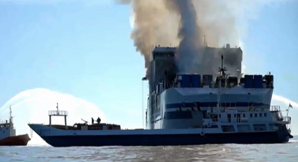 Από τις πρώτες δηλώσεις των Ελλήνων επιβατών η φωτιά φέρεται να ξέσπασε στο τρίτο κατάστρωμα όπου ήταν σταθμευμένα φορτηγά και ΙΧ επιβατικά αυτοκίνητα.