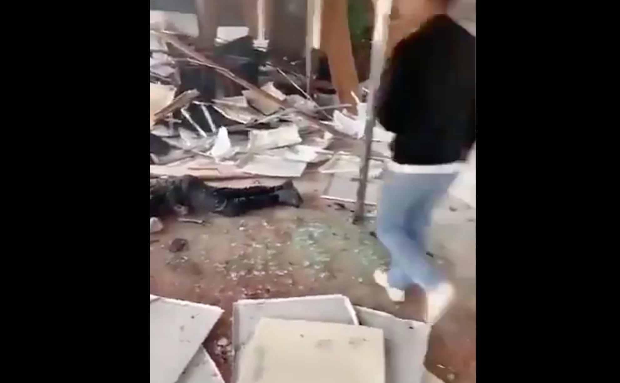 Βίντεο που προβλήθηκε στον ενημερωτικό ιστότοπο Jiemian δείχνει ένα γραφείο κατεστραμμένο και τα άψυχα σώματα δύο ανθρώπων να κείτονται στο έδαφος.