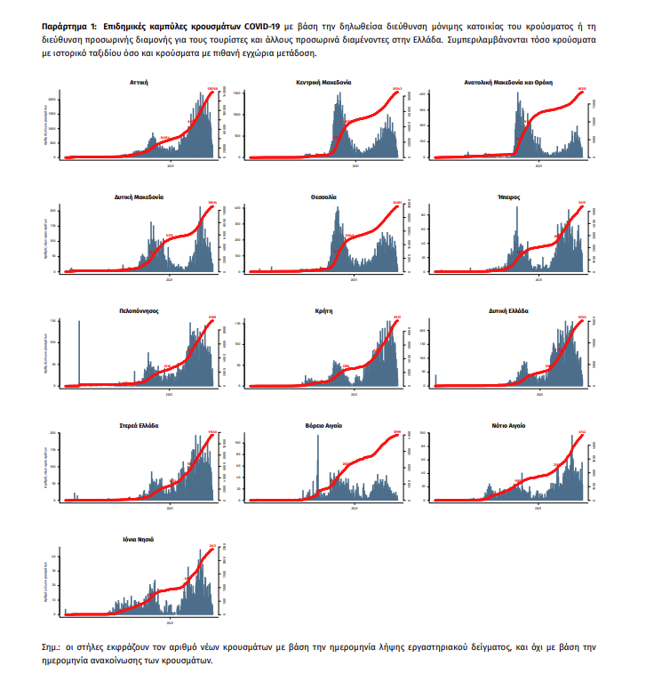 Δείγματα που έχουν ελεγχθεί: Από την 1η Ιανουαρίου 2020 μέχρι σήμερα, στα εργαστήρια που διενεργούν ελέγχους για τον νέο κορωνοϊό (SARS-CoV-2) και που δηλώνουν συστηματικά το σύνολο των δειγμάτων που ελέγχουν, έχουν συνολικά ελεγχθεί 4.685.281 κλινικά δείγματα ενώ από Μονάδες Υγείας και Κλιμάκια του ΕΟΔΥ που διενεργούν ελέγχους Rapid Ag έχουν ελεγχθεί 3.525.679 δείγματα. O μέσος όρος του επταημέρου είναι 37.666 δειγματοληπτικοί έλεγχοι.