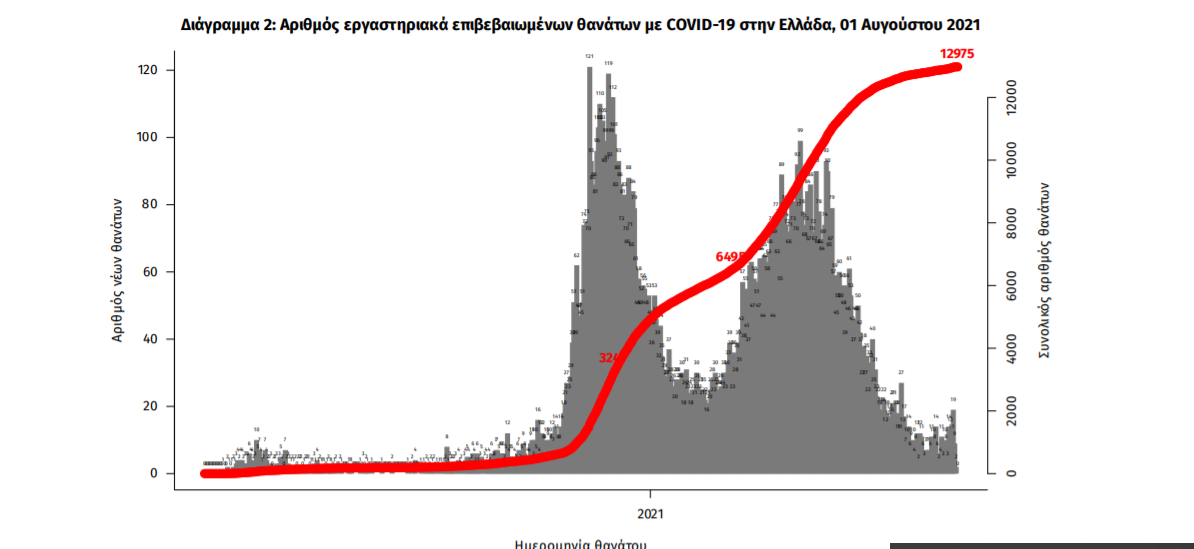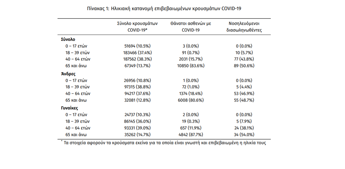 Οι νέοι θάνατοι ασθενών με COVID-19 είναι 10, ενώ από την έναρξη της επιδημίας έχουν καταγραφεί συνολικά 12.975 θάνατοι. Το 95.2% είχε υποκείμενο νόσημα ή/και ηλικία 70 ετών και άνω.
