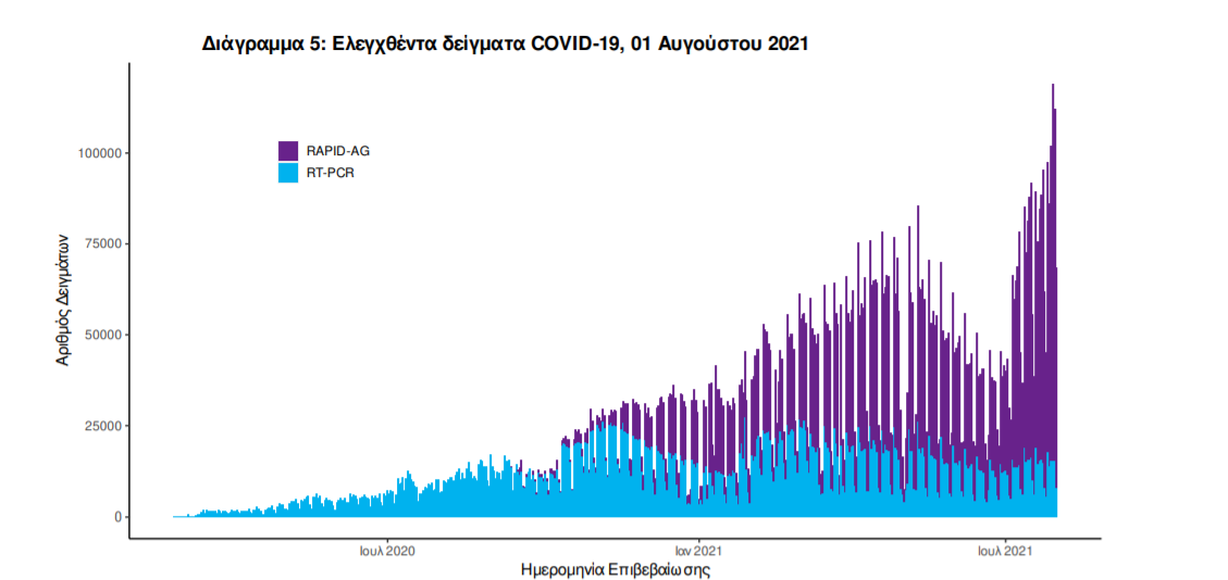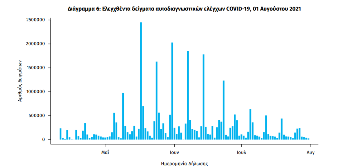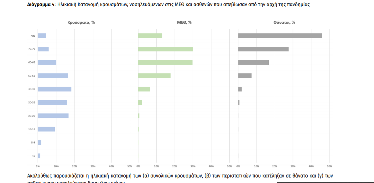 Ο αριθμός των ασθενών που νοσηλεύονται διασωληνωμένοι είναι 176 (64.2% άνδρες). Η διάμεση ηλικία τους είναι 65 έτη. To 83.0% έχει υποκείμενο νόσημα ή/και ηλικία 70 ετών και άνω. Από την αρχή της πανδημίας έχουν εξέλθει από τις ΜΕΘ 2.808 ασθενείς. Οι εισαγωγές2 νέων ασθενών Covid-19 στα νοσοκομεία της επικράτειας είναι 163 (ημερήσια μεταβολή +7.95%). Ο μέσος όρος εισαγωγών του επταημέρου είναι 172 ασθενείς.Η διάμεση ηλικία των κρουσμάτων είναι 41 έτη (εύρος 0.2 έως 106 έτη), ενώ η διάμεση ηλικία των θανόντων είναι 78 έτη (εύρος 0.2 έως 106 έτη)