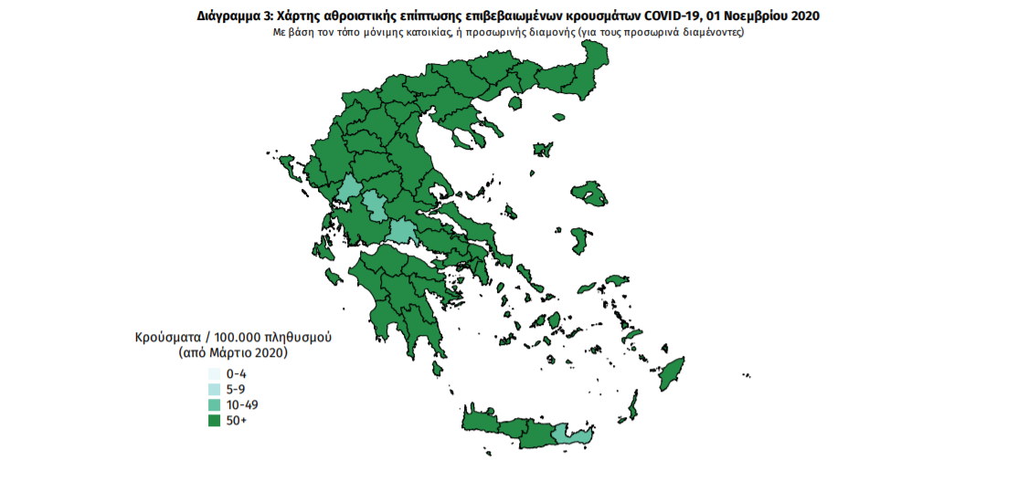 4137 (10.1%) θεωρούνται σχετιζόμενα με ταξίδι από το εξωτερικό και 13493 (33.0%) είναι σχετιζόμενα με ήδη γνωστό κρούσμα.