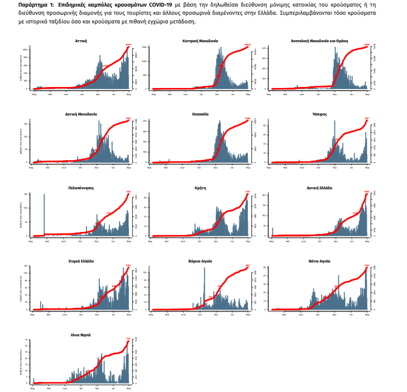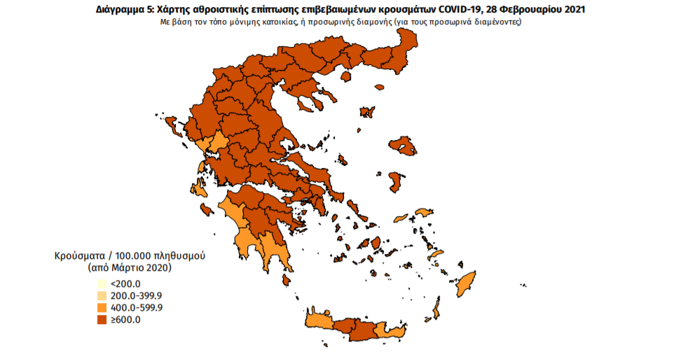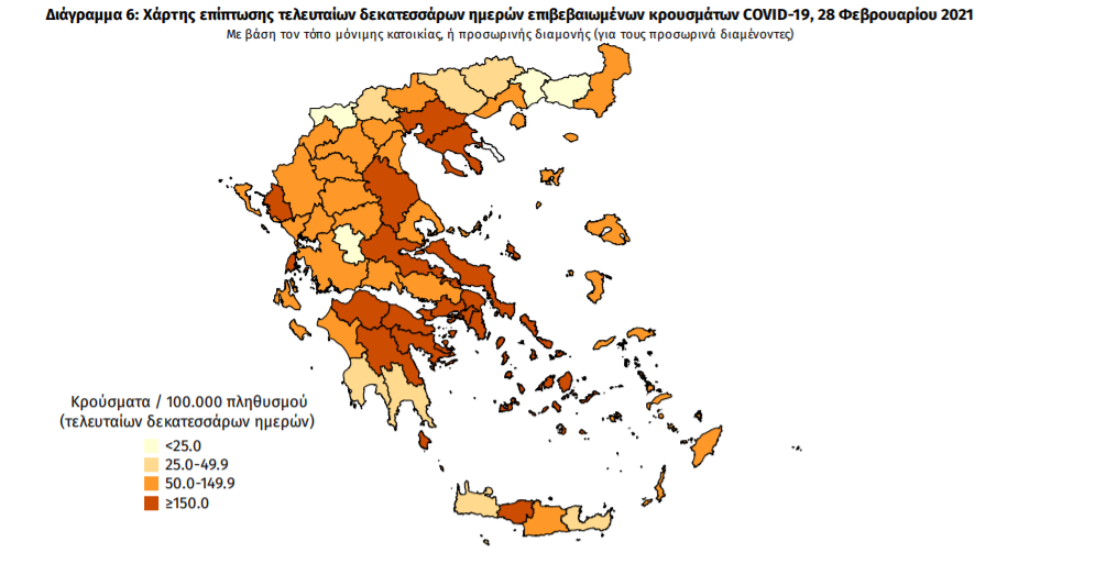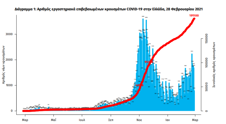 Τα νέα εργαστηριακά επιβεβαιωμένα κρούσματα της νόσου που καταγράφηκαν τις τελευταίες 24 ώρες είναι 1.269, εκ των οποίων 1 εντοπίστηκε κατόπιν ελέγχων στις πύλες εισόδου της χώρας. Ο συνολικός αριθμός των κρουσμάτων ανέρχεται σε 191.100 (ημερήσια μεταβολή +0.7%), εκ των οποίων 51.7% άνδρες. Με βάση τα επιβεβαιωμένα κρούσματα των τελευταίων 7 ημερών, 53 θεωρούνται σχετιζόμενα με ταξίδι από το εξωτερικό και 2.671 είναι σχετιζόμενα με ήδη γνωστό κρούσμα.