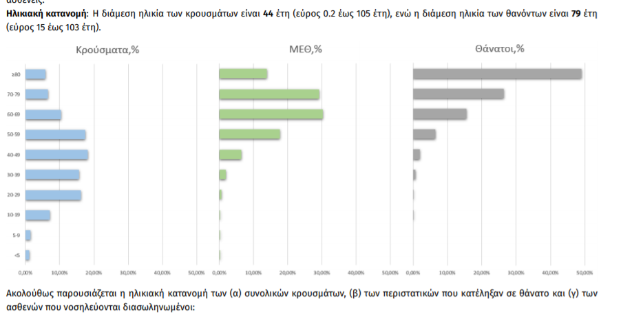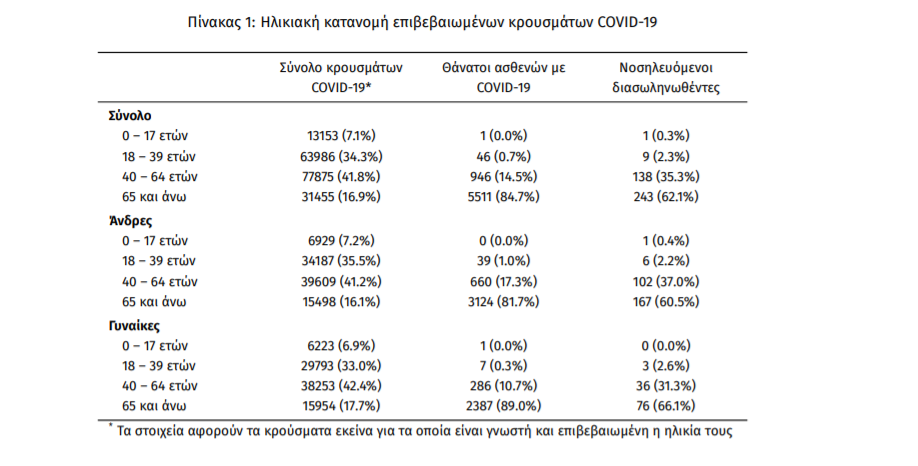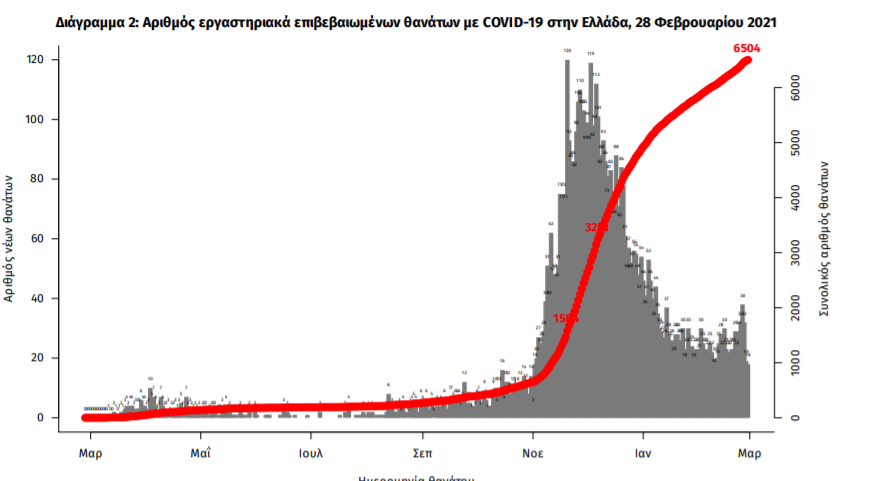 Οι νέοι θάνατοι ασθενών με COVID-19 είναι 36, ενώ από την έναρξη της επιδημίας έχουν καταγραφεί συνολικά 6.504 θάνατοι. Το 95.7% είχε υποκείμενο νόσημα ή/και ηλικία 70 ετών και άνω.