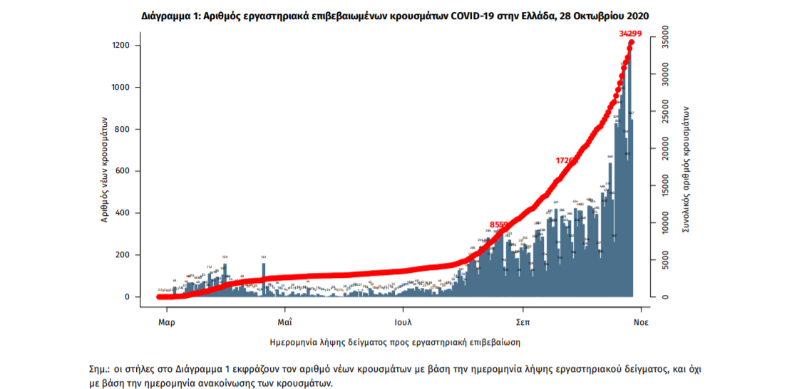 Κοροναϊός: Νέο αρνητικό ρεκόρ με 1547 νέα κρούσματα- 10 θάνατοι και 108 διασωληνωμένοι