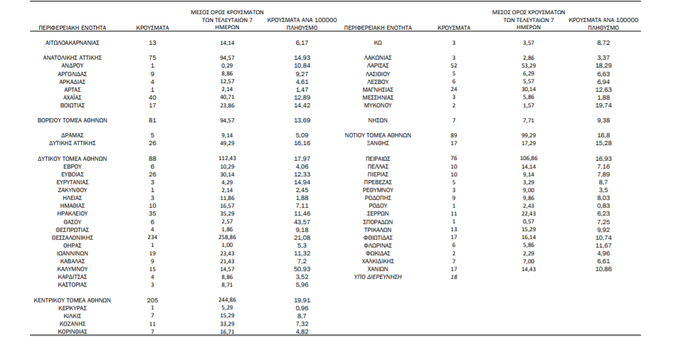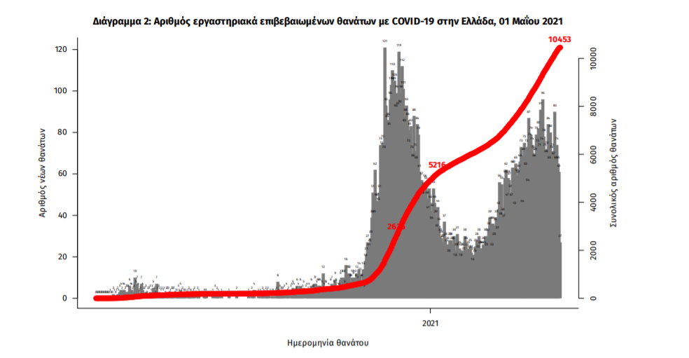 Οι νέοι θάνατοι ασθενών με COVID-19 είναι 72, ενώ από την έναρξη της επιδημίας έχουν καταγραφεί συνολικά 10.453 θάνατοι. Το 95.4% είχε υποκείμενο νόσημα ή/και ηλικία 70 ετών και άνω.