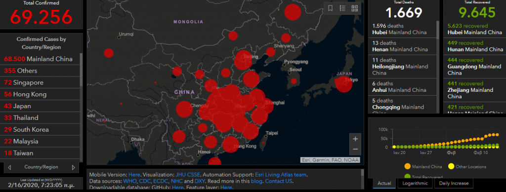 Περίπου 68.500 άνθρωποι έχουν προσβληθεί από τον κοροναϊό στην ηπειρωτική Κίνα (πλην Χονγκ Κονγκ και Μακάο).