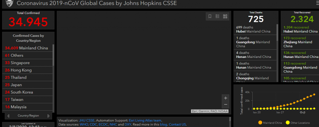 Ο απολογισμός των νεκρών από την επιδημία πνευμονίας που προκαλεί ο νέος κοροναϊός ανέρχεται σε 725, σύμφωνα με τα τελευταία στοιχεία που αναγράφονται σε επίσημο πίνακα.